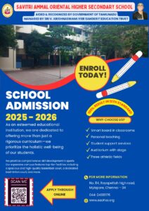 Enroll Now! Admissions for 2025-2026 Are Open at Savitri Ammal Oriental Higher Secondary School
