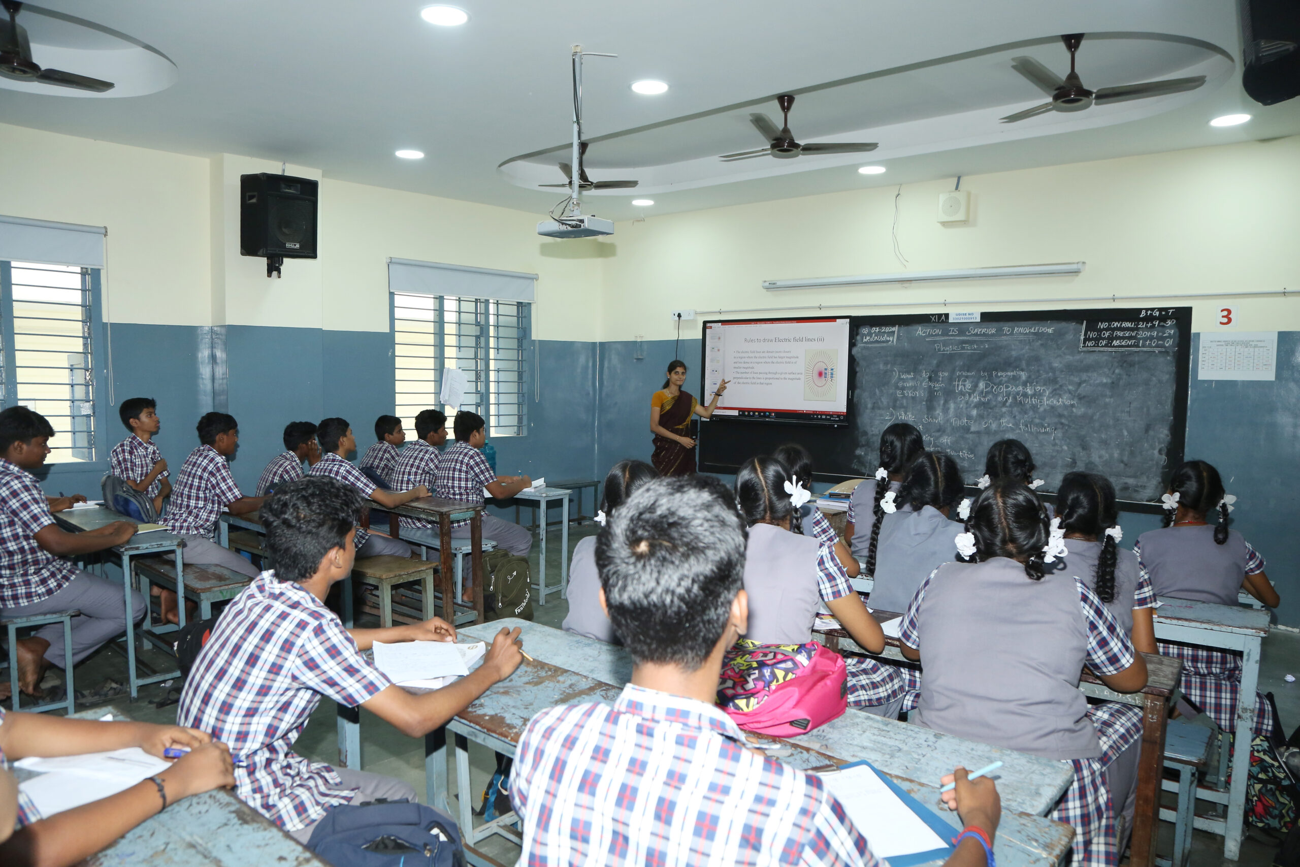 Modern classrooms with interactive teaching aids enhance learning experiences, ensuring the founder's vision.
